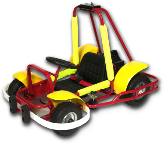Com um motor elétrico de 180 Watt e uma bateria de 24 volts, permite velocidades controladas entre os 3 e os 10 km/h, que irão causar sensações inesquecíveis a uma altura ao solo de 5 cm.